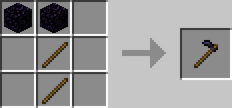 | Obsidian Pickaxe | Stick x2 Obsidian x3 | |
